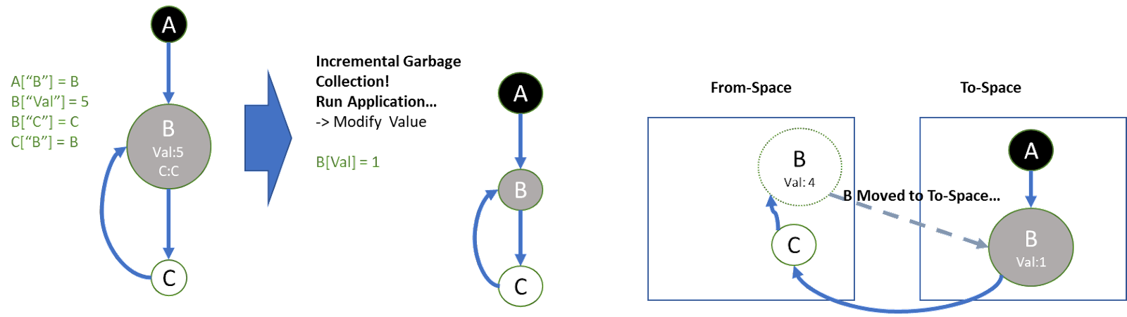 C-> (FromSpace) B -> Val = 4 값을 읽어오게 된다. To-Space에 있는 진짜 B의 Val field 값은 1인데 이상한 값을 읽는 것이다.