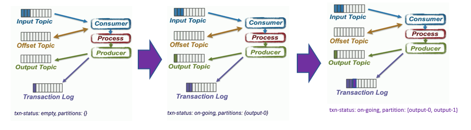 Kafka는모든 각 파티션 마다 Transaction Log를기록하기 위해 __transaction_state 라는 internal topic을 이용한다(즉 각 파티션 마다 __consumer_offsets, __transaction_state 두 개의 internal topic이 운영된다. https://github.com/a0x8o/kafka/blob/master/clients/src/main/java/org/apache/kafka/common/internals/Topic.java#L28 ). __transaction_state또한 Kafka Broker는 각 Producer들의 transaction coordinator로 지정되어 __transaction_state를 관리한다.