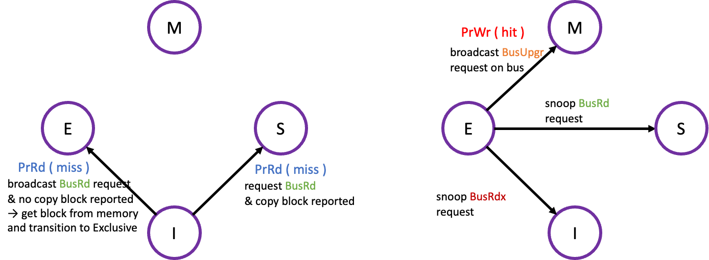 - 아래 오른쪽 그림은 exclusive 상태의 transition을 나타낸다(설명은 그림으로 충분하니 생략).
